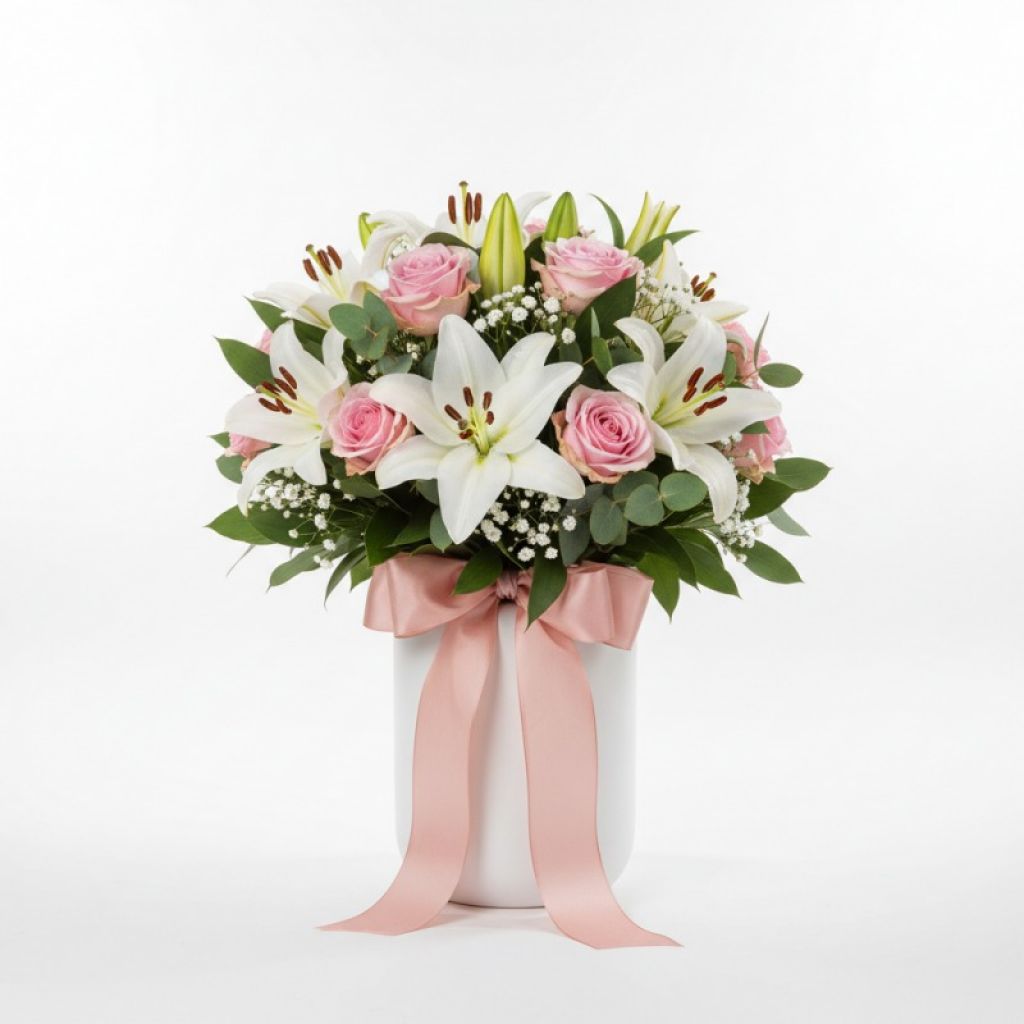 Zarafet Buketi: Beyaz Lilyum & Pembe Gül